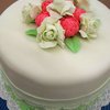 Final cake for Fondant and Gum Paste class (Wilton Course 3). I wanted the ruffles much more frilly--I didn't get a lot of instruction on how to do them. They're much too thick, and I think she had me use the wrong tool to ruffle (a veining tool?)