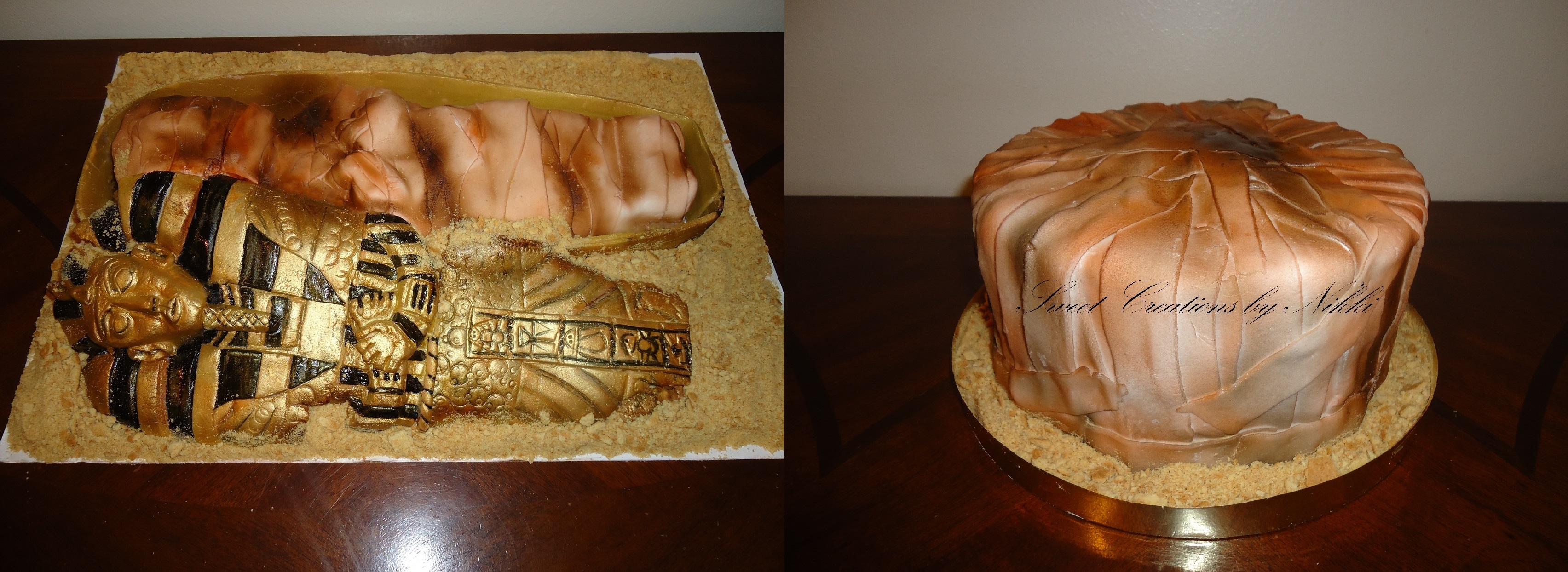 Egyptian Mummy Cake Raspberry Cake With Chocolate Frosting Fondant Wrapped Mummy Hand Sculpted Lid And Sarcophagus Made Out Of Modeling