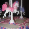 Using the Wilton carousel kit for a 1st birthday cake. I wish I had better pictures fo it but assembled it when I delivered it to my friend's house and the camera batteries were dying. The horses are a ton of work done with fondant, but am happy with the results.
