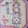 Many thanks to talented artist, Lindsay Brackeen for the permission to use her artwork as inspiration for this baby shower cake. This 10'' cake is white chocolate cake with strawberry puree filling. Buttercream icing with a chocolate transfer plaque and small fondant flowers and lettering. TFL!
