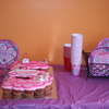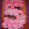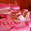 A cupcake cake for a princess' fifth birthday. Decorations modeled after party supplies (shown in additional photo). Cupcakes are strawberry with raspberry buttercream icing. (I wasn't sure if the flavors would go well together, but they complemented each other very nicely.) Decorations are all buttercream fondant.