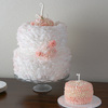 My client found a cake on Pinterest that she liked and I used it as a reference. The ruffles are made out of wafer paper and tinted on the ends with light pink dusting powder and vodka. The flowers are made out of gum paste.