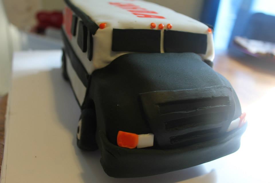I have such a hard time choosing favorites, but I think I can narrow it down. I did this armored truck cake for my husband to take to work (he works for them). Mud cake and ganache underneath, fondant on top.