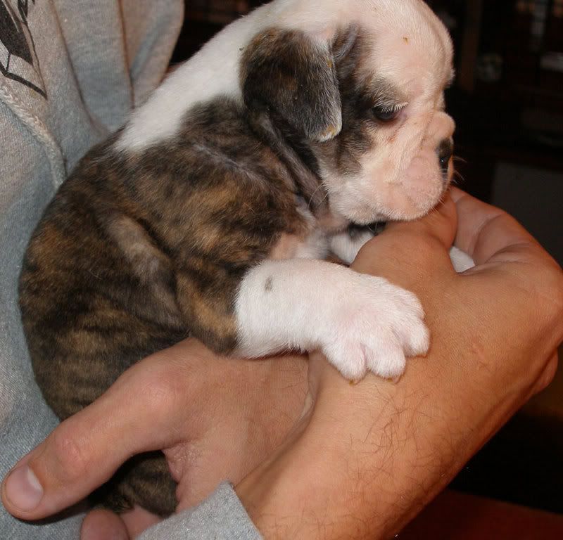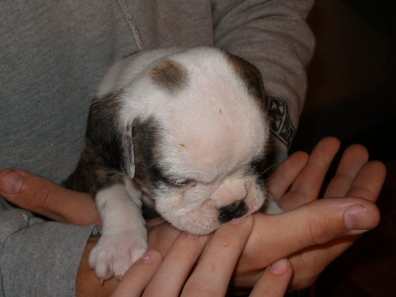 Thanks. I love him already and he kind of whines when he first goes into the crate and but after he realizes that he cant come right back out he quites down and plays with some of the toys he has in there. He has a stuff animal that smells like his mom and family so that way he can kind of feel at home. He sleeps on it, its so cute. We are thanking about getting a female english bulldog as well to maybe breed later on because my husband wants one as well and we would like to teach them both at the same time. But I am so excited and the price of these puppys are well worth it.
