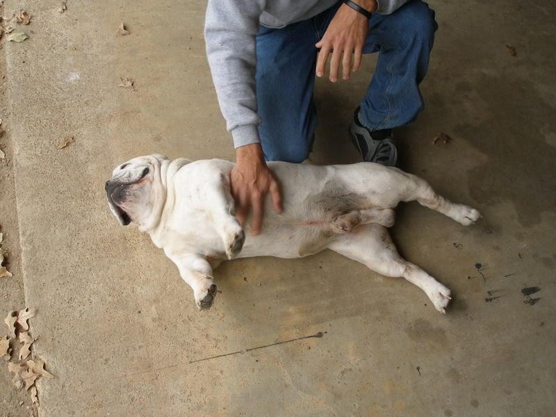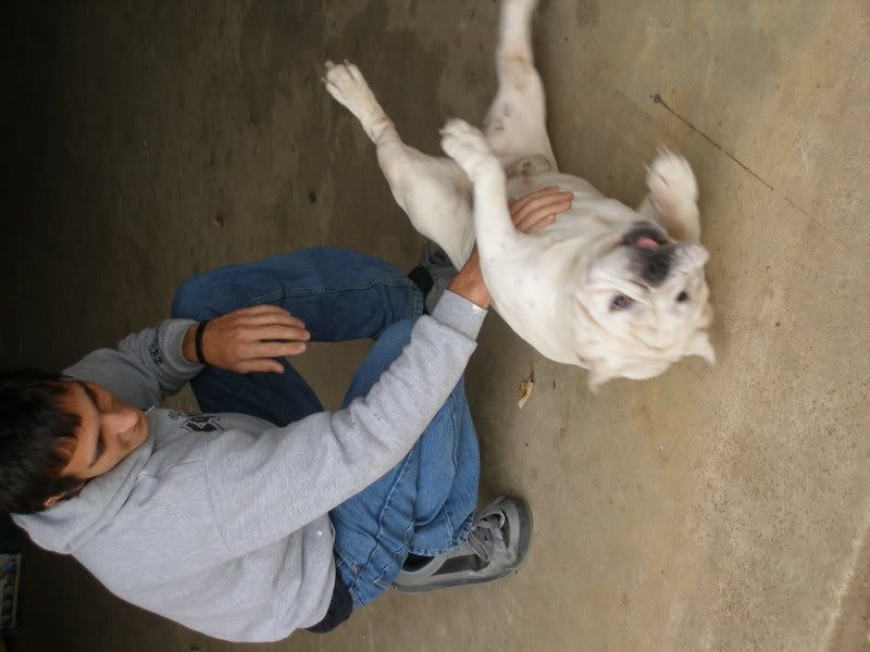 When we went to the breeders house last week, her dad Rufus, the white one..came running out of the house and rolled straight onto his back for belly rubs! They were all so loving and affectionate..I was kind of nervous at first because they look so intimidating, but they are so sweet!