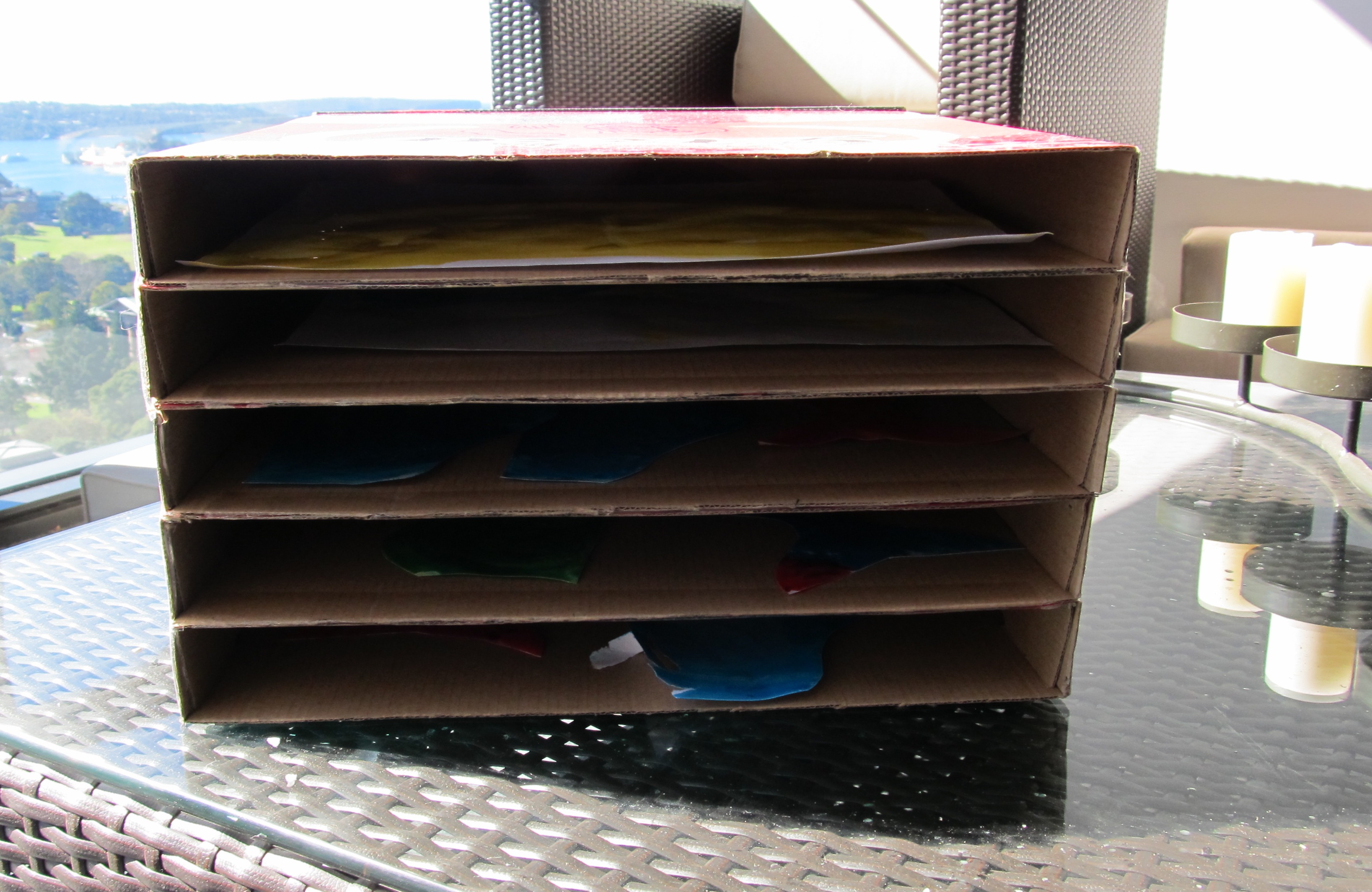I totally understand what you are talking about. Mine too were behind sofa or in closet but always falling apart. I got inspired by this photo, this is actually pizza boxes stacked on top of each other to hold my kids drawing in the their playroom. My husband made me this version in MDF wood. It was simple to make as a DIY project. Now my boxes are out of my way. The only thing is you need a place to store this wooden box.