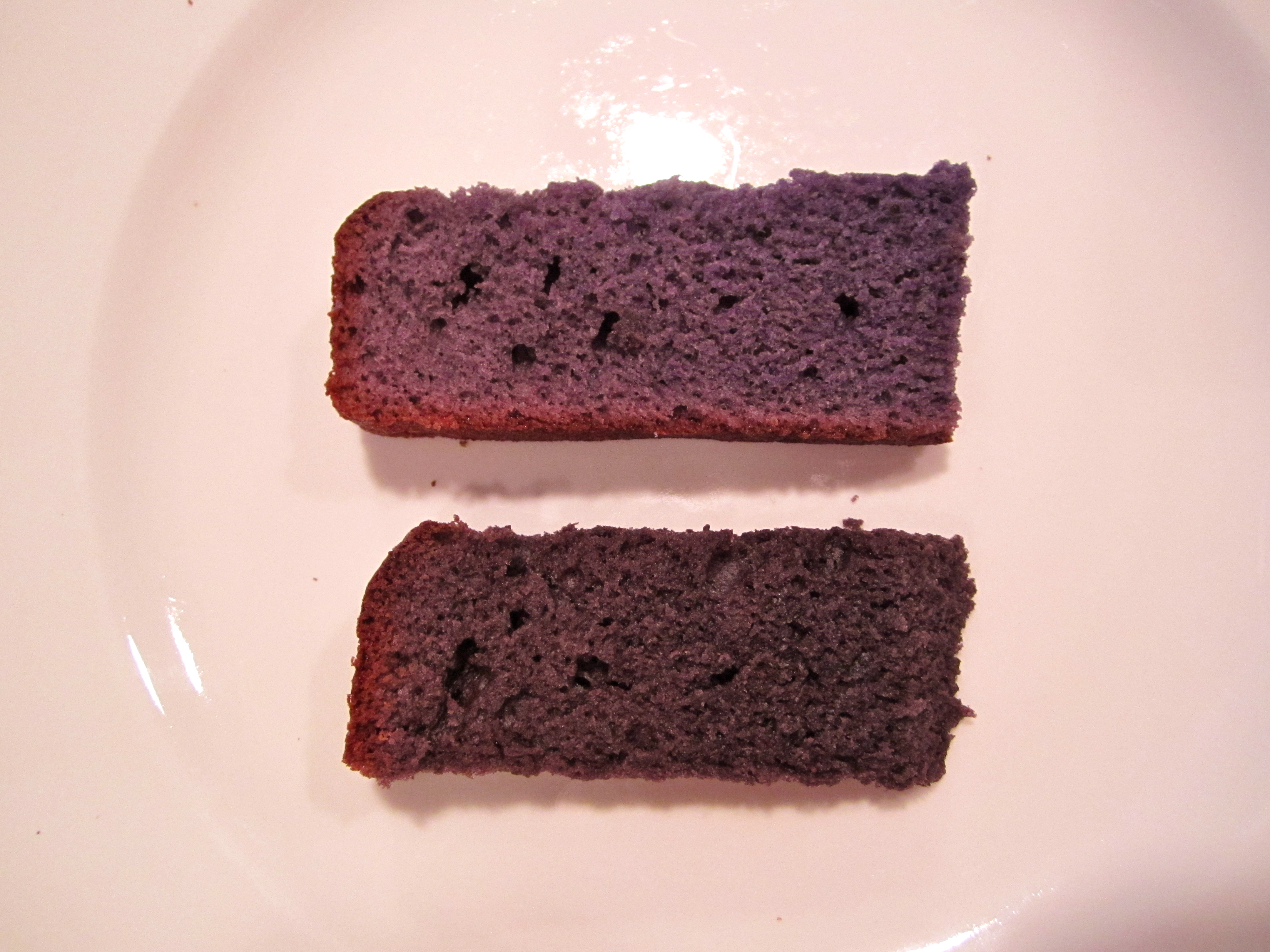 I tried this once, and the purple turned out gray. The batter was the purple of the darker lilacs, but it didn't bake out right for me.