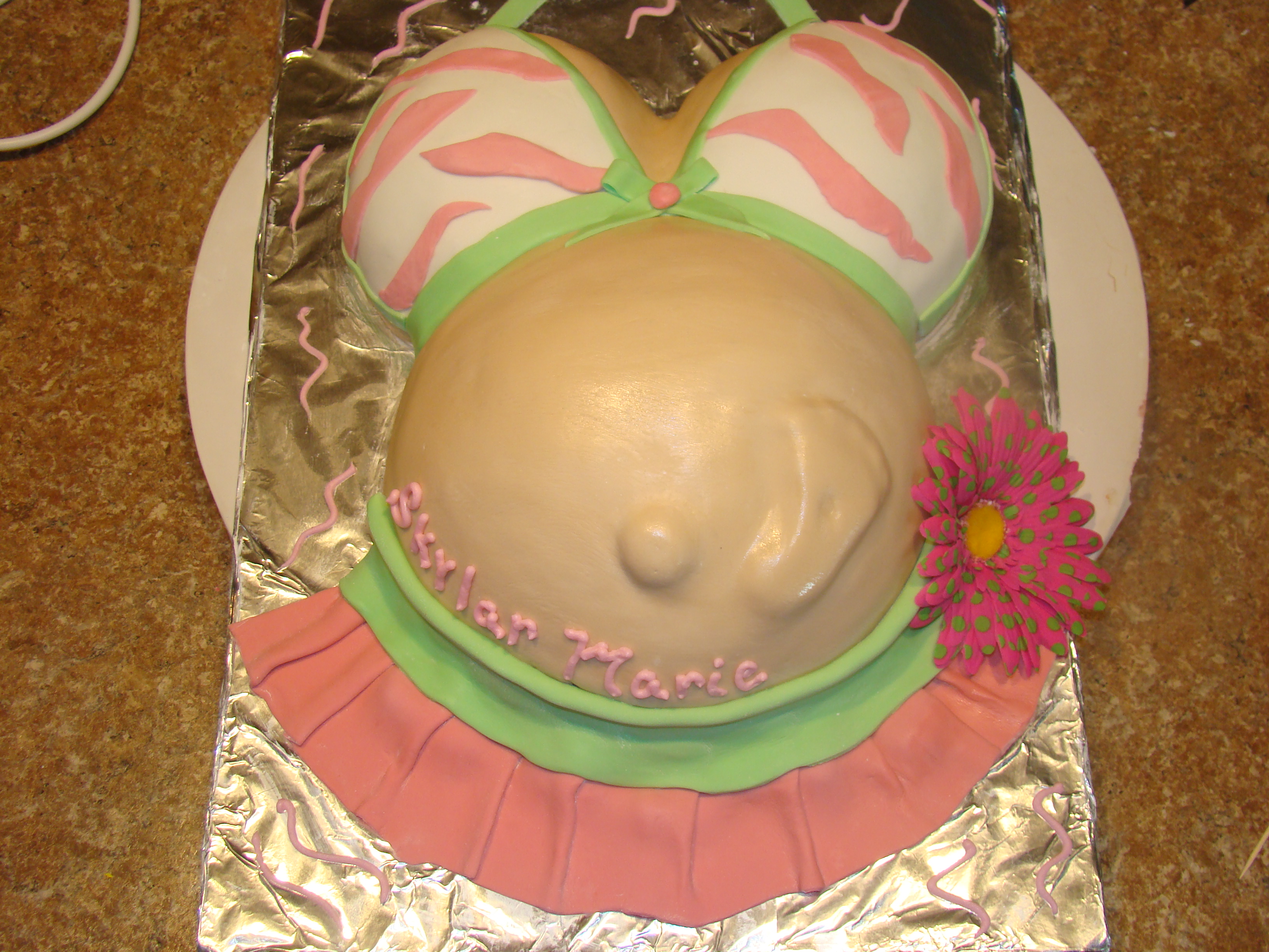 I make the Pregnant Belly Cakes using the Wilton Soccer Ball (BELLY) and Baseball (half ball) pans (BOOBS).