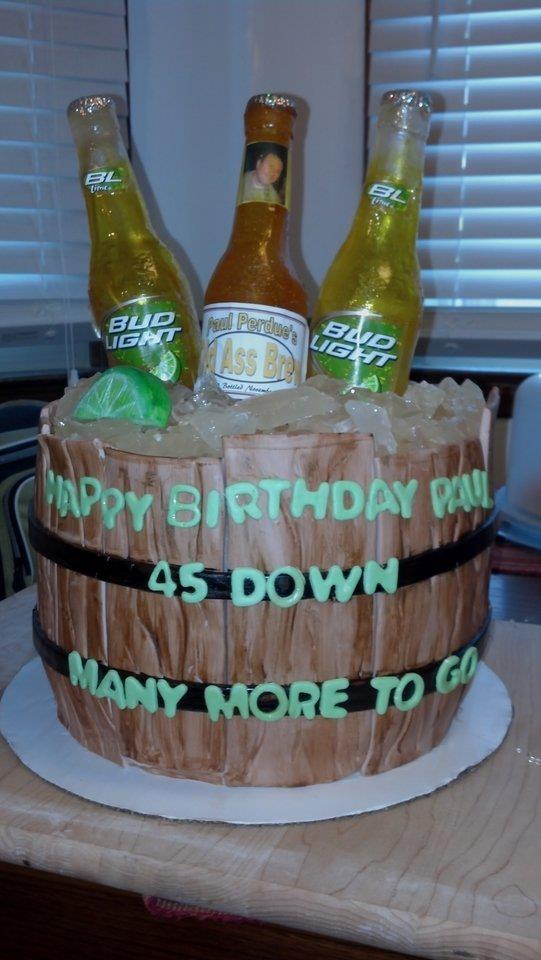 He thought the whole thing was real! Later he told us that the beer companies sometimes send in little promotional items that are plastic replicas and he thought it was one of those! I even had people from the other side of the bar coming over to take pics of the cake....and yes, I drummed up a TON of business with this thing!