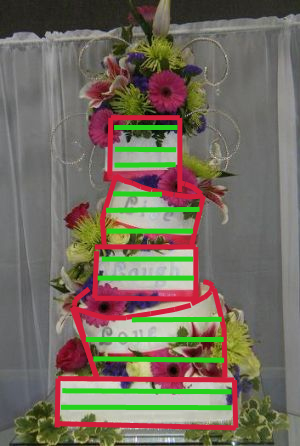 I tried to do a quick sketch of what I mean- red outlines the cake and green to show the BC layers- it should just show lots of flat level layers even though the finished tier looks slanted- this method helps stop sideways slippage.