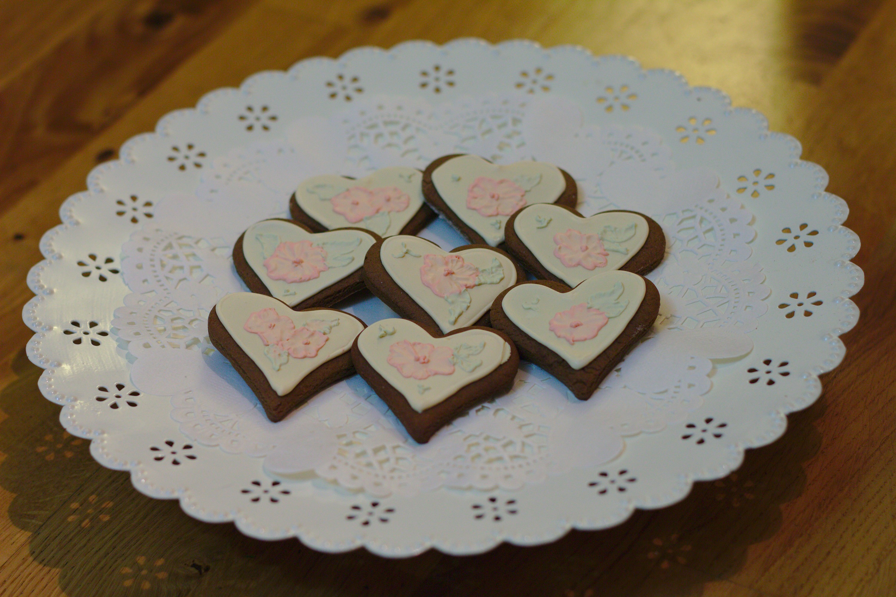 The brush embroidery is beautiful, if the flooding would have been better, the whole cookies would've been exquisit. The good thing is, you know what went wrong. Next time flood more of the cookie, up to the rim and then brush. Are the cookies drop cookies? Cut cookies would look better as well, especially as the brush embroidery is such a fine technique, that just looks nicer on cut cookies (I leave out the leavening agent to get better results)