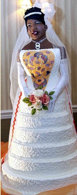 I read some story that the bride always wanted a life size doll, so she had it made as a wedding cake, but I am not sure how the one transitions to the other ![]()