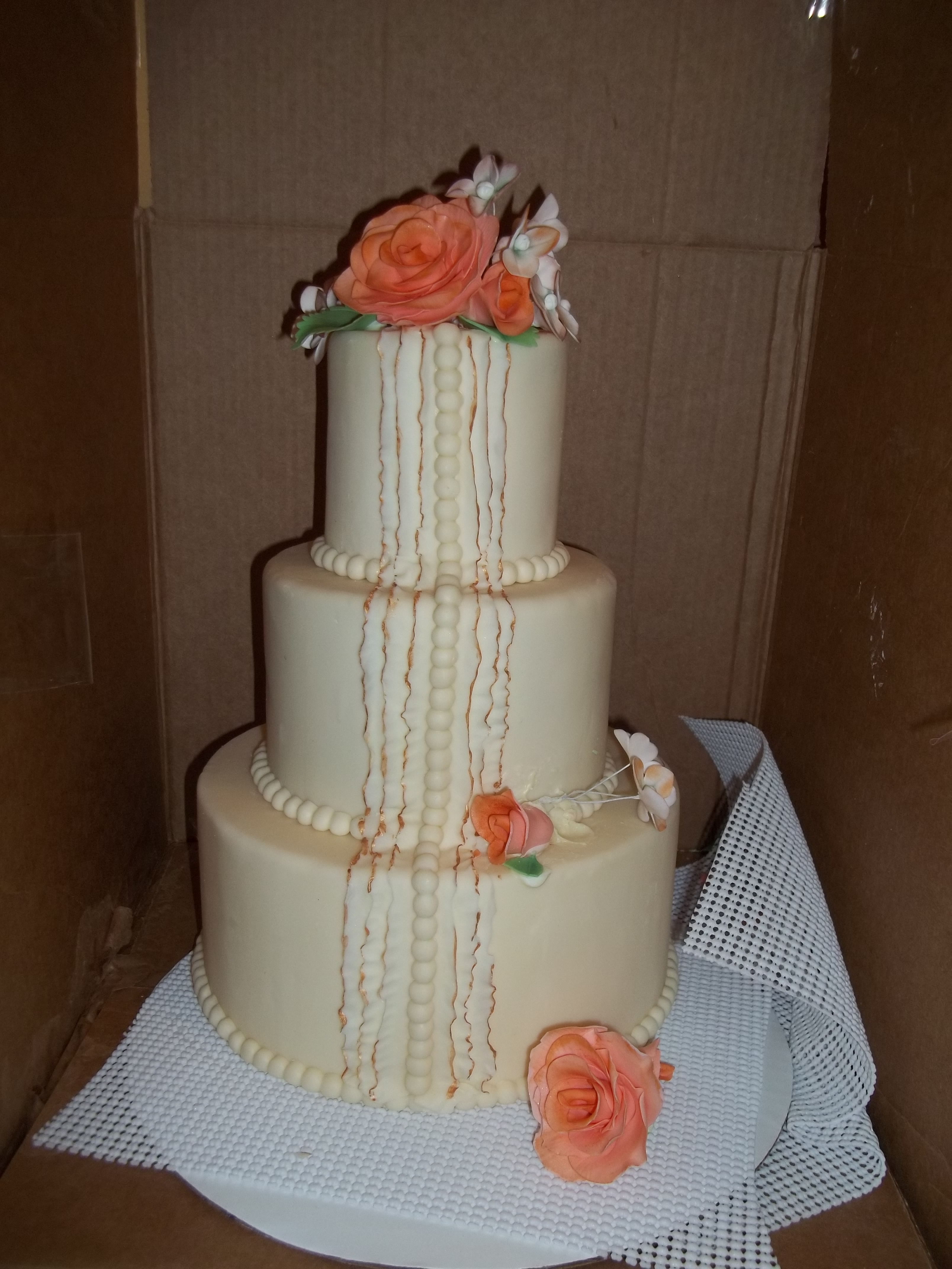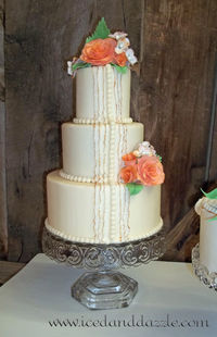 I am loving this cake so much, I am really wanting to make my own version for my bridal show in June ;-) It reminds me of a blouse I had when I was a little girl. It looked just like that, but all in cream. (A very small old lady gave me a bunch of her clothes, and I loved them! It was quite shocking when I got made fun of at school for wearing them, but I was always a decade or so ahead of the new fashions, lol. )