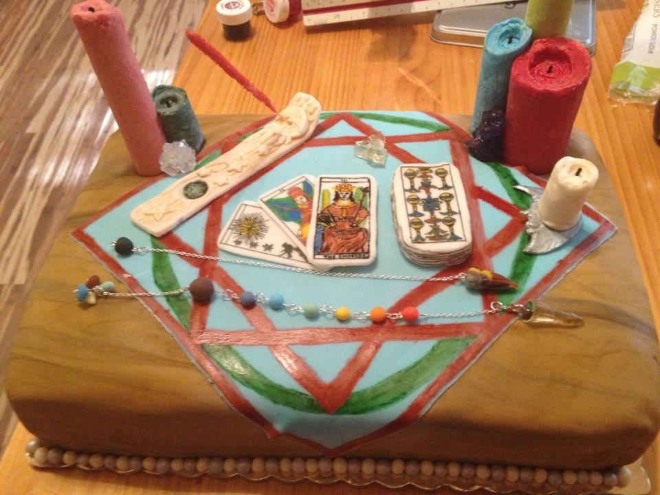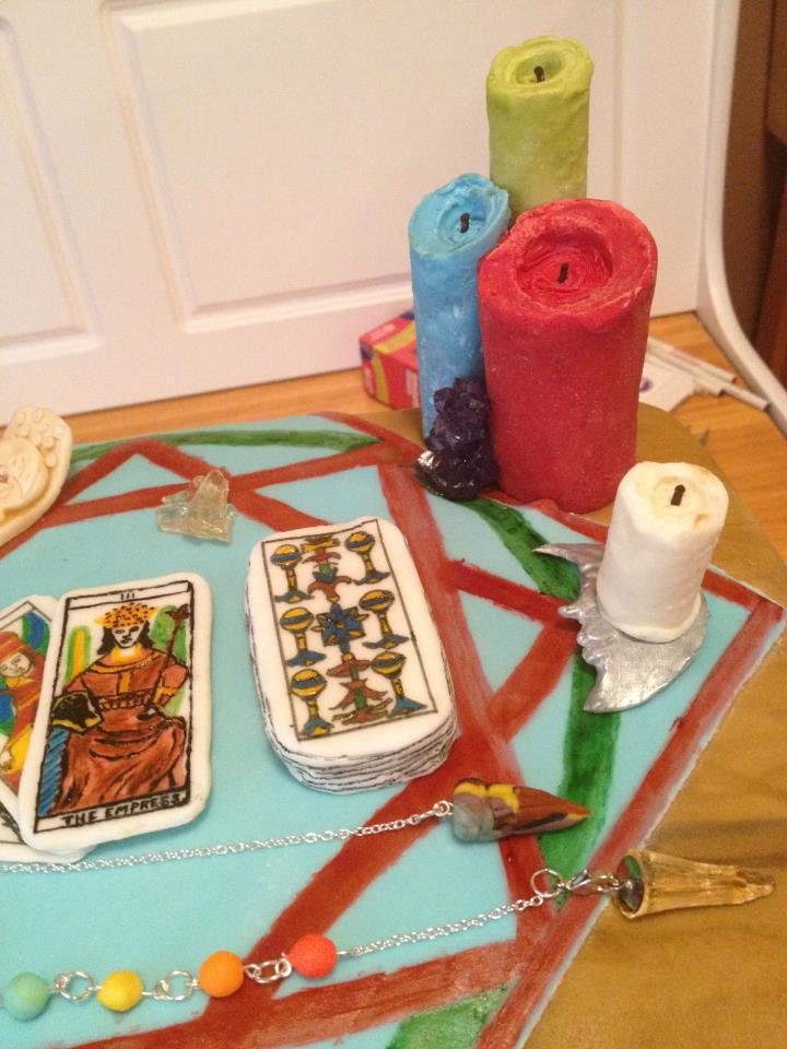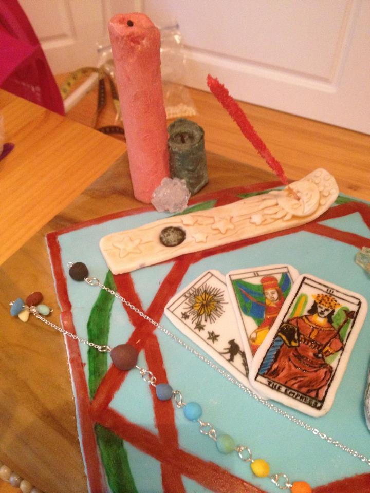 I recently made a cake, and I'm new to all of this. I ended up charging $80, but the girl gave me $100. They really loved the cake (thank goodness). I was just wanting to see what you all would've charged. All of the decorations are edible (either fondant or white chocolate melts) except for the chains on the pendulums. It was a 9 x 13" cake, and everything was hand painted or handmade....it's covered in fondant.....it was two layers, red velvet with buttercream. You will see the pictures below. Oh, it was based on a spiritual advisor's alter....I got photos of her alter and replicated much of it for the cake. Thank you ahead of time for your input!