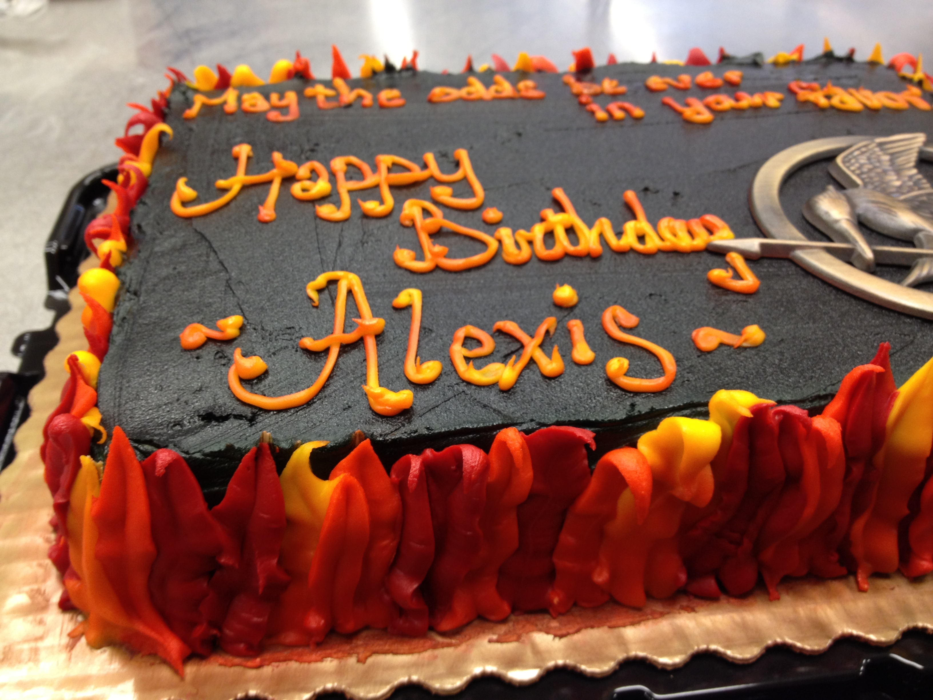 I am making a Hunger Games cake for someone and in my head I thought it would be neat to cut a bunch of fondant leaves out of fondant that is marbled red, yellow and orange. And then place them on the cake, kind of like fish scales, going up the cake to simulate flames.