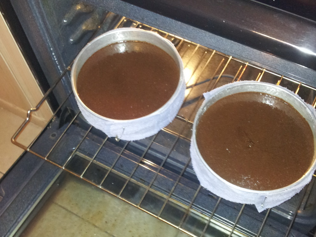 AI have yet to try this trick but instead I use a flower nail. Just grease the flower nail and place in the center of your pan with batter and bake it works like a charm! Sometimes if you notice a small hump just use a clean cloth and press down to evenly flatten immediately after removing from the oven. I hope this helps you it's sure helped me!