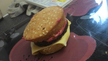 I have put coconut on it, you can't see it because i had to take the lid off to cut the chocolate cake (burger) because it was thicker than the 'bread.'