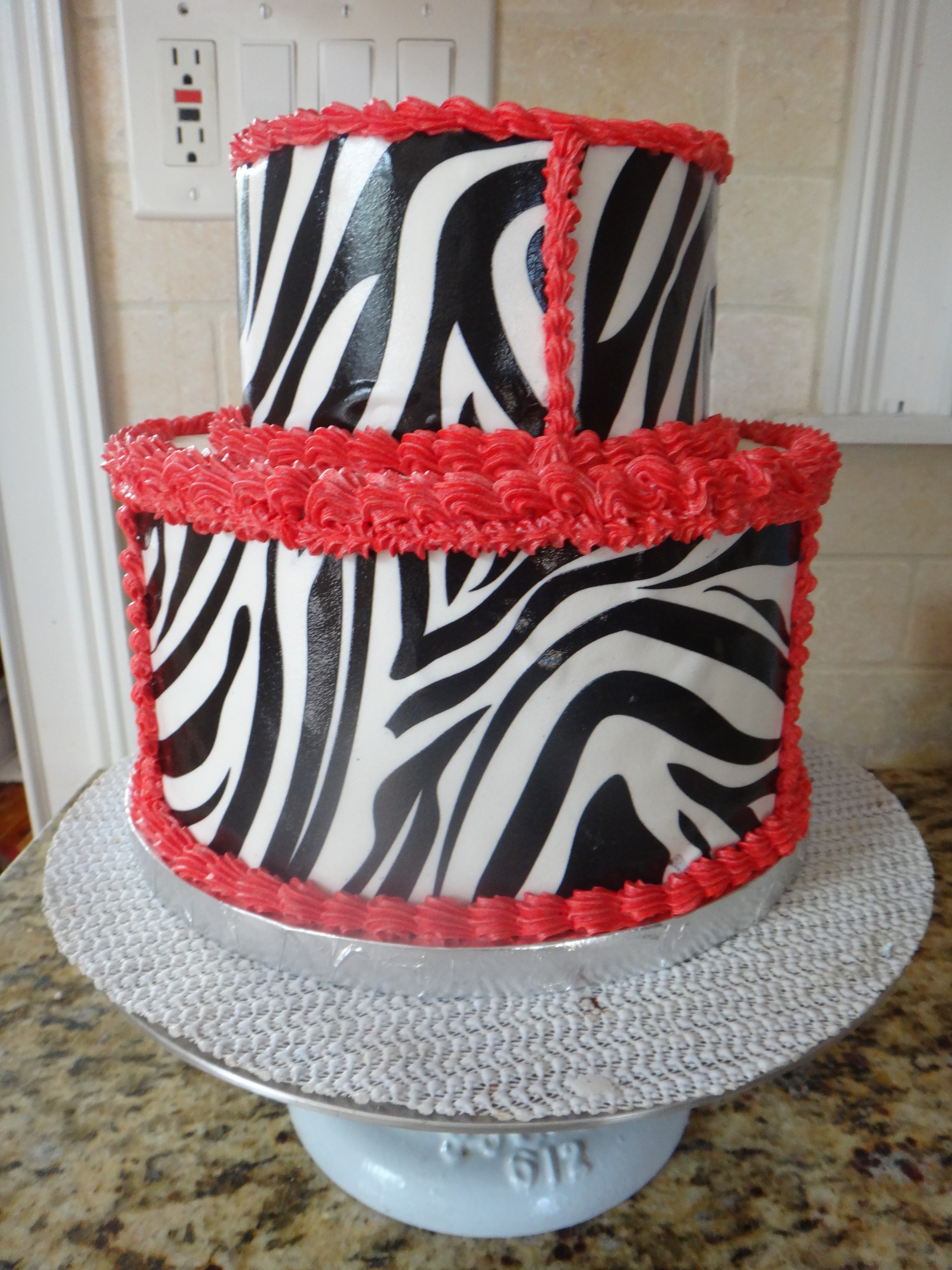 I will give the needle trick a try, and see if that helps, although I am one of those who fiddle and fiddle with something and usually it ends up the same or worse than if I had just left it alone! That is why the red line at the top is not straight on the side of the cake. :( I was fiddling and fiddling and the cake got too hot and a chunk came off the top of the bottom tier. I had to fix that, and then try to get the top tier on straight again. Close enough!!!! Not my best work, but still better than a grocery store cake!