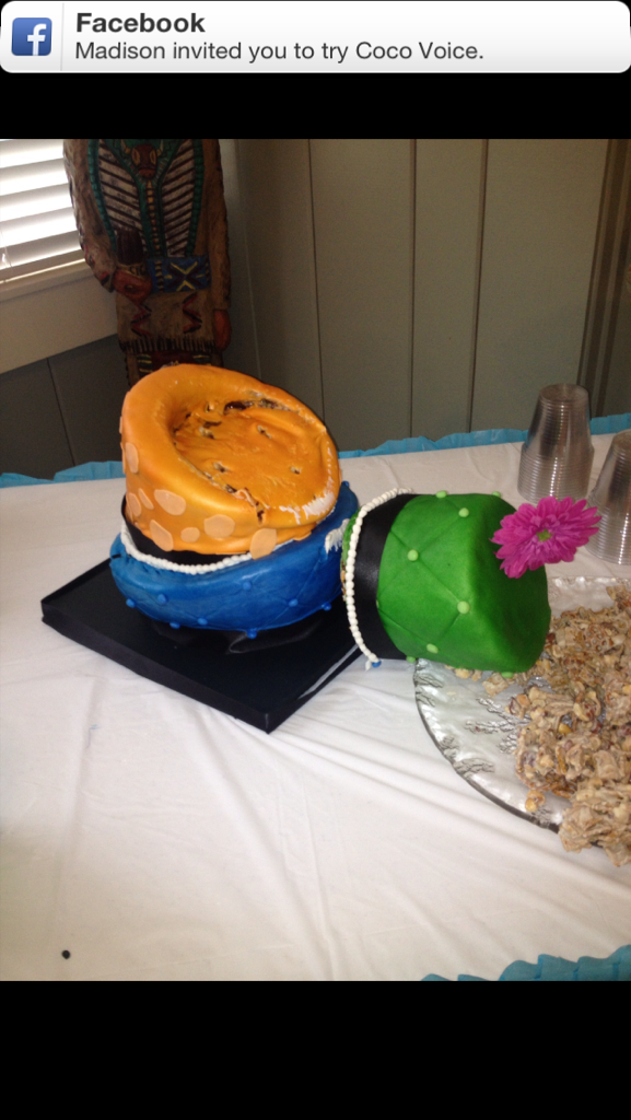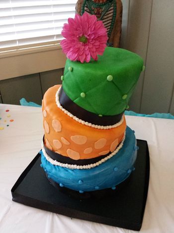 I've had my first boo-boo after 4 years of my home-based business... This topsy turvy cake was iced in ganache and then covered in buttercreme. The hostess wanted me to set up the day before, but I assured her that it was much too humid for it to sit overnight at the venue (we're in East Texas), She had me come the day of the event 6 hours before it started, and as soon as I got to the venue, I could tell the humidity was working against me. It was 78 degrees, and I turned the dial down to 64, but it kept turning itself off. They couldn't make me any room in the fridge, and I could see the bottom layer's fondant starting to wrinkle and buckle up. I'm providing a copy of the work order (which was already discounted), a photo of the cake after I assembled it and left, and the cake 6 hours and 10 minutes after setting up after it had toppled.