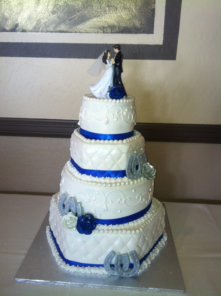 And last but not least, I am putting ribbon around the bottom layer. I have been searching and searching for edible ribbon, royal blue. I have tried making it with fondant and gum paste but can't seem to get the color where it needs to be.
