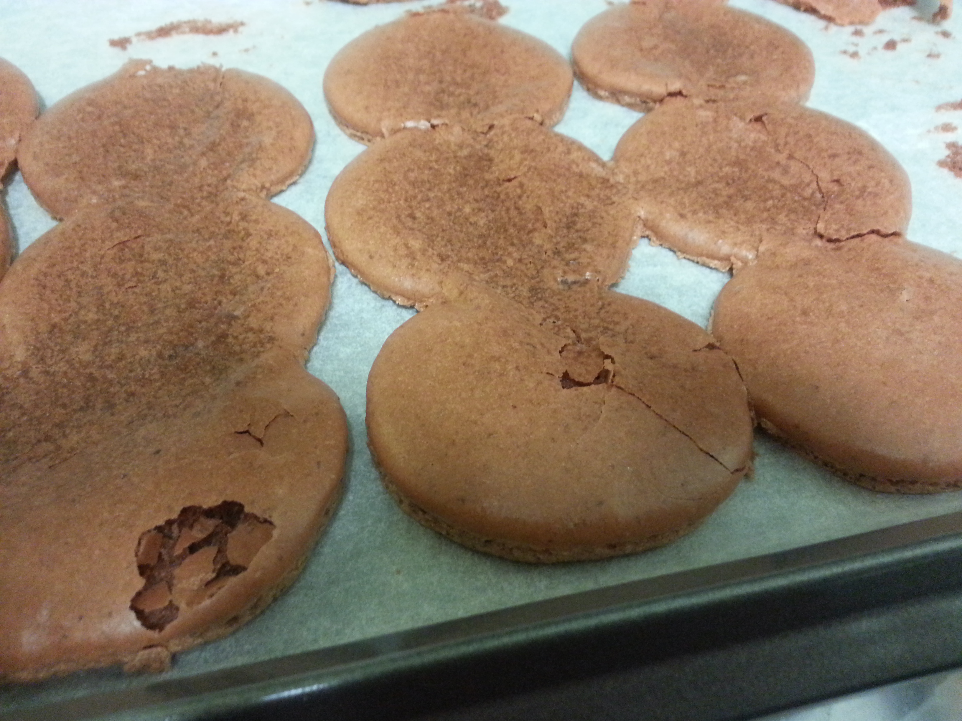 Alsom, did my color turn out like that because it was under bake or over bake? I see alot of dark spots. =( I mixed in the food coloring when my meringue just formed and used the hand mixer to beat it in. But i know some people like hand mix it during the flour and powder sugar process. Is my process wrong? and did that effect the color?