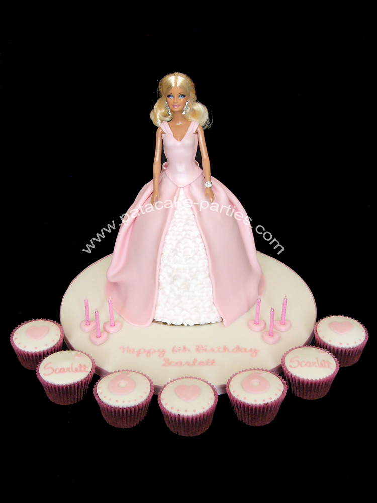 I'm making two cakes for a friend's children. A race track where I'm going to make some extra tyres to hold the candles on the side of the board and a barbie cake for her daughter. Can anyone think of anything I could make that's princessy to hold the candles on the barbie cake? I'm making it like sleeping beauty pink.