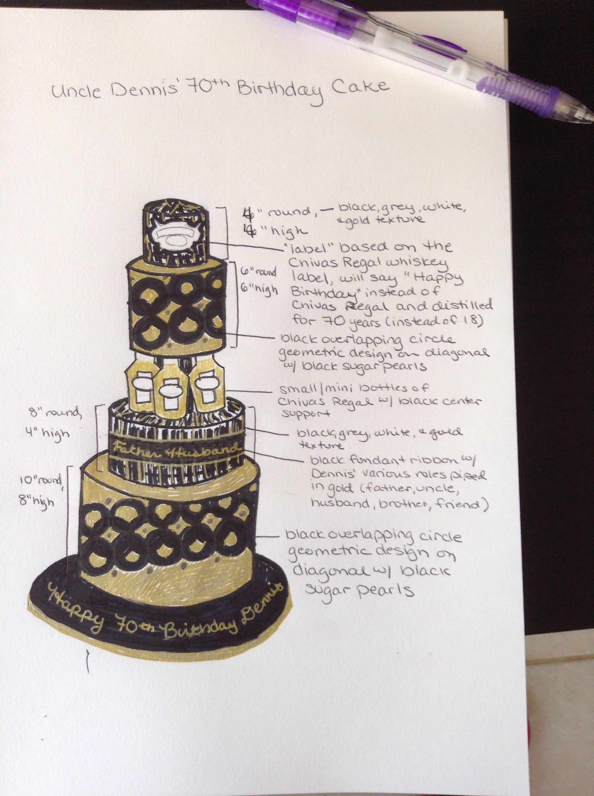 Since it is only 2 tiers and a very simple design I am not worried. White Swiss Meringue BC, either a black vine and leaves or a black piped swirl and some red roses. I buy my roses. I think even Wall World could pull off this design.....it would just taste like crappola