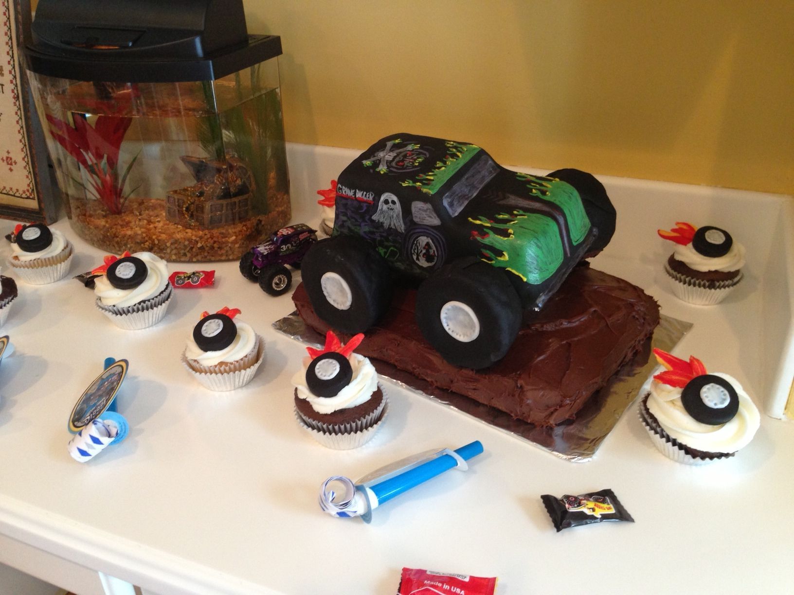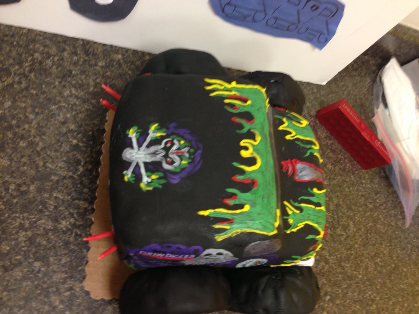 Working on a Monster Truck cake. I have a RKT Truck and wheels made and frozen.