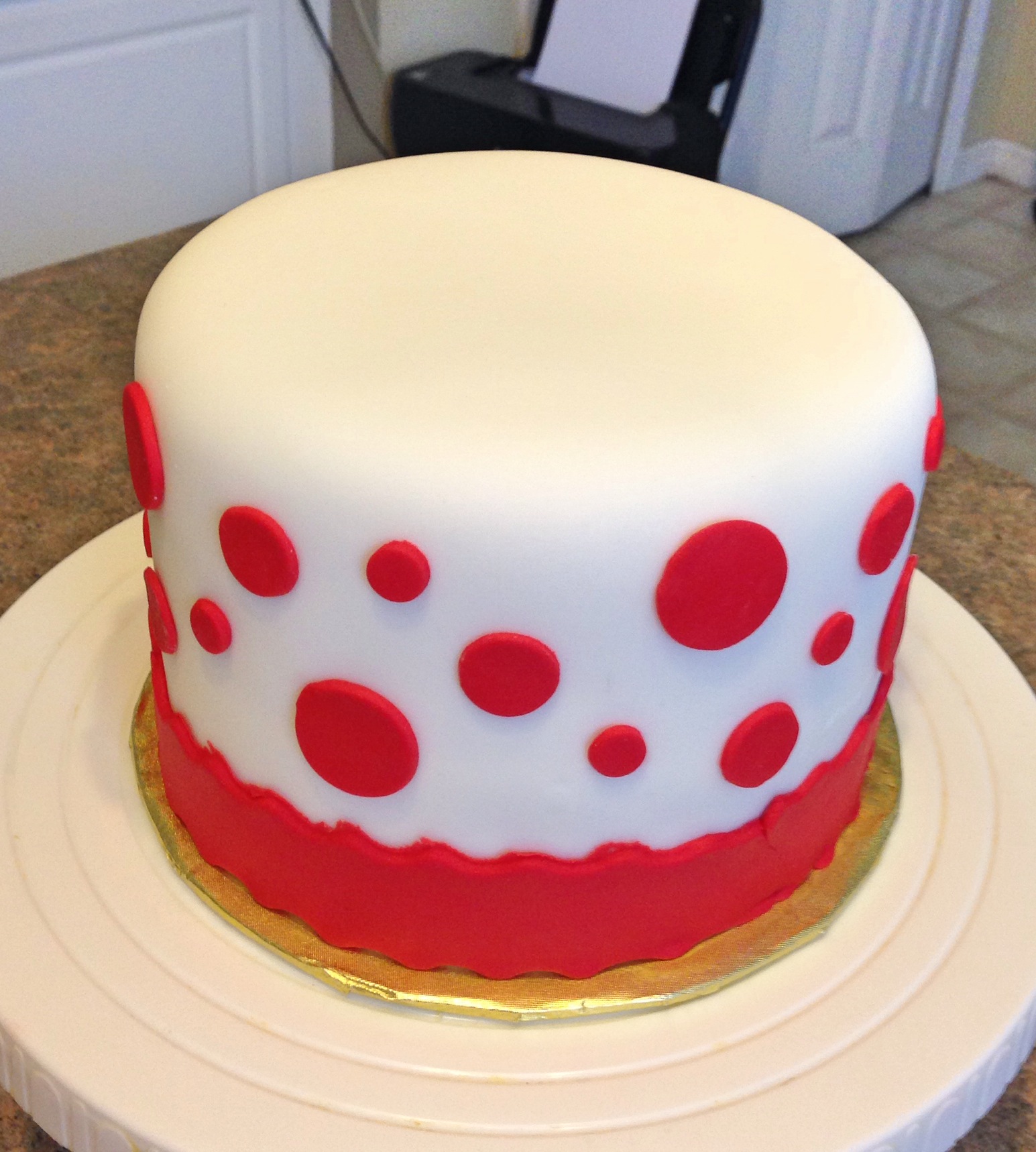 Here's a pic of the cake I did. I used the dots to cover the imperfections showing through the fondant. :)