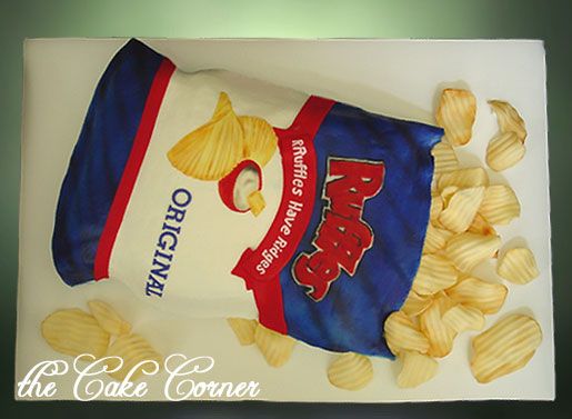 AReminds me of the bagged spinach cake that was viral recently. Anyone see that one? Where the bag was made from gelatin, and the cake was inside, and had little pieces of fondant spinach? Way cool! I love trompe l'oeil cakes, they're so fun. I'd love to make a potato chip bag cake for a wedding!