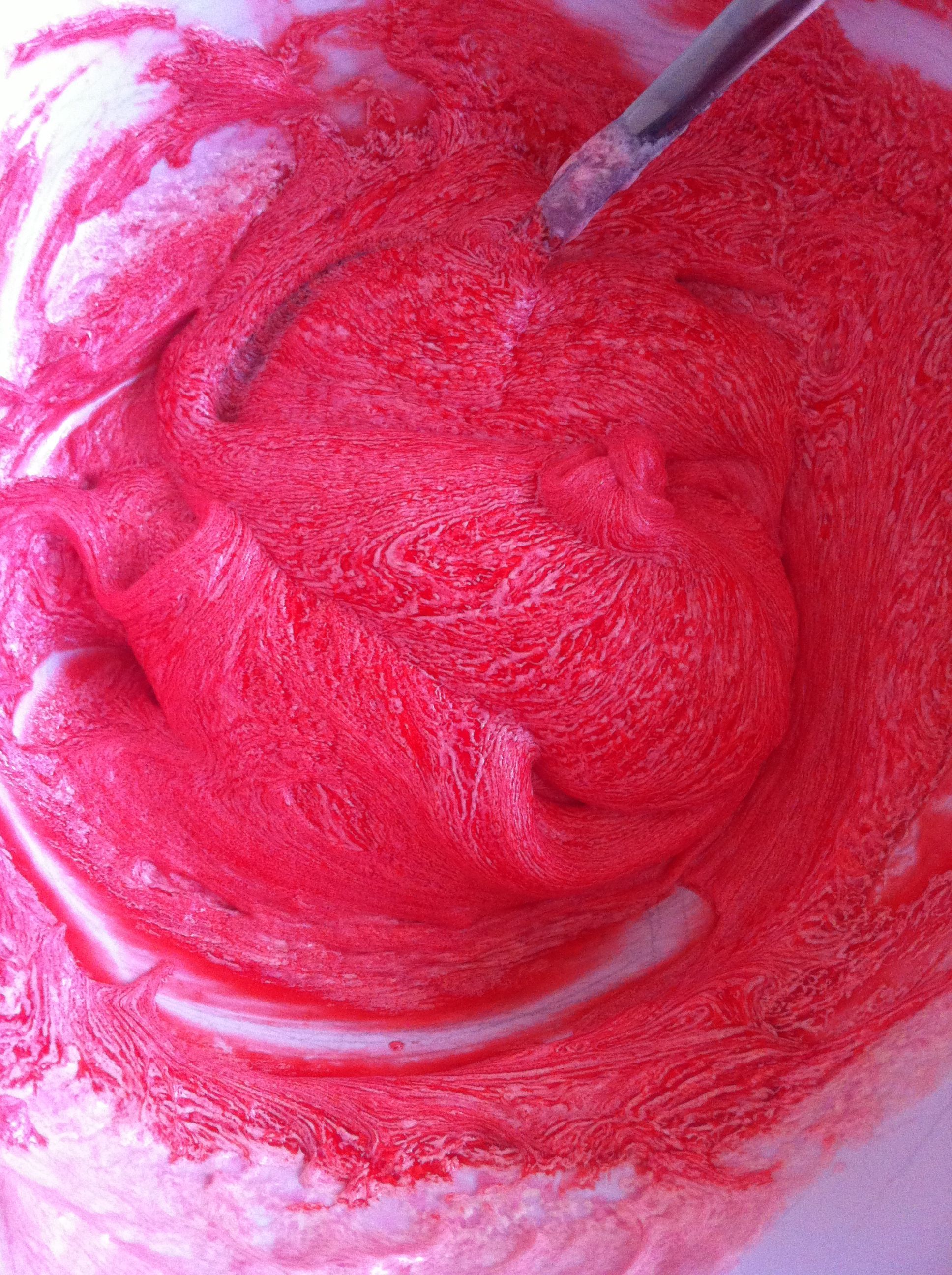 Then melt the colored stuff in the microwave or in a small pan. Do not make it hot, just melted. The color will deepen intensely.