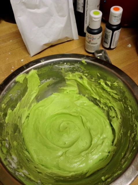 have let it sit in the fridge for 20 minutes or so it does taste like the piped frosting on the Grocery store cakes. It picked up the chemical taste from the food coloring too.