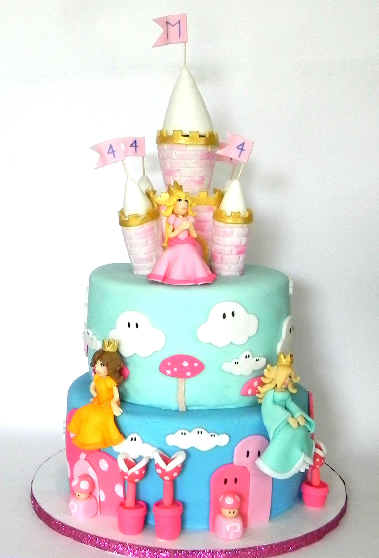 Super Pink Princess cake. Princesses from Super Mario. I made this entire cake in 1.5 days. The toppers were teeny tiny compared to the size I normally make. They are about 3 inches tall, waists thinner than my pinky, and their heads were the size of hazelnuts.