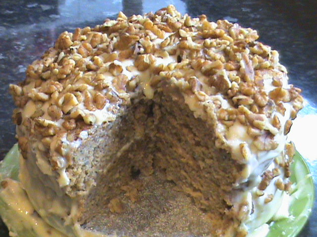 Sorry I forgot to say it had a buttercream icing and crushed walnut or pecan nut sprinkled on top