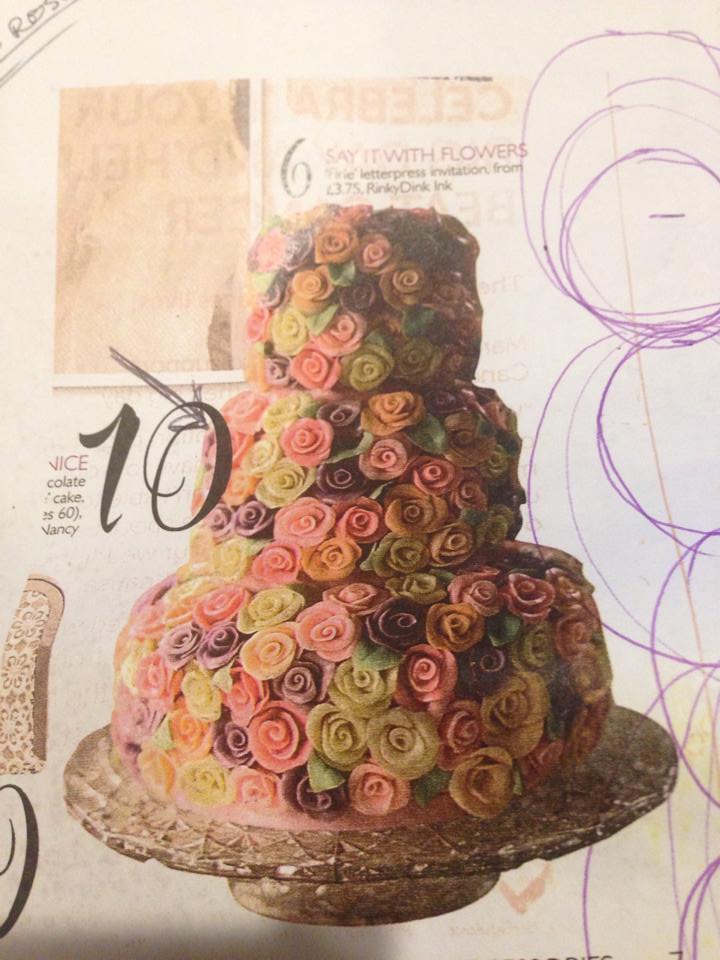 Here is one of my larger cakes with a similar look. Very very easy to make and a joy to transport. If you have a Kindle, you might be able to view the rose instructions for free by borrowing Elegant Dream Wedding Cakes from Amazon's library. Amazon Italy Amazon US. Of course you might find the rose instructions online with a search as well. Good luck! You can do it! Beverley Way