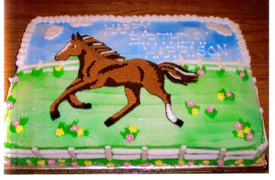 Sheet Cake w/ BC icing, the flowers and fence posts are made of