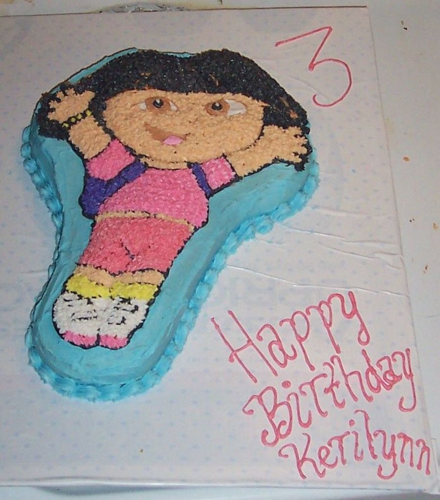 White cake with pink coloring added, to make it a pink cake (per my daughter's request), used the Dora character pan. BC icing, star tip