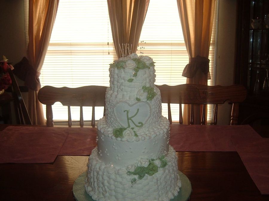 First Wedding Cake. Tried to do something sort of nice without adding a lot of expensive detail , because customer made it clear her budget was really tight. so I created her a cake in all buttercream.