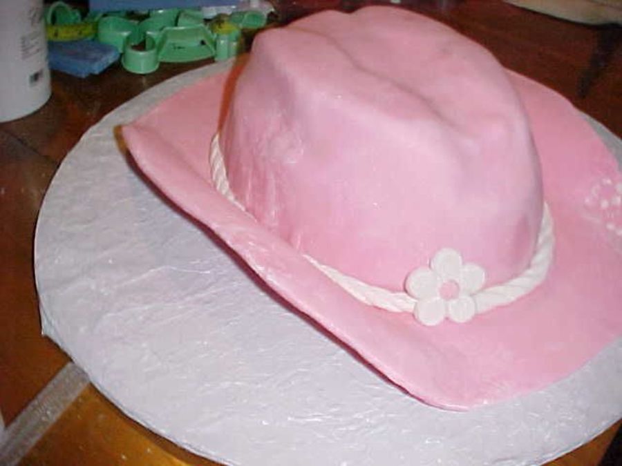 My 16 year old daughter tied for 1st place at the festival for her cowgirl hat made out of fondant. She had to roll a towel up to help form the brim to the base of the hat. After it dried, she was able to remove the towle and it retained its shape.