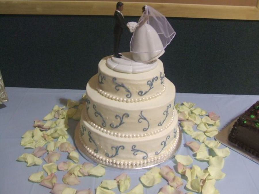 elegant cake w/ scrolls. the topper was the heaviest I had ever
