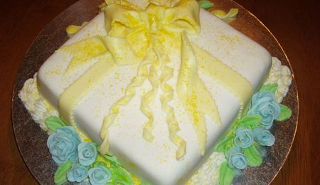This was my second wedding cake ever. It was gum paste decorations, the cake was butter cream. Choc. filled with raspberry, White choc. filled with cheese cake. I had a ball making this cake. I stressed for a week over it. I had to transport it 100 miles....arrived in one piece and everyon loved it. I am pretty PROUD....Please let me hear your remarks.....