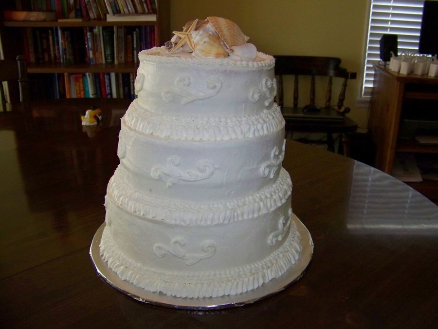 all buttercream, bottom layer was a dummy, also had a seashell topper