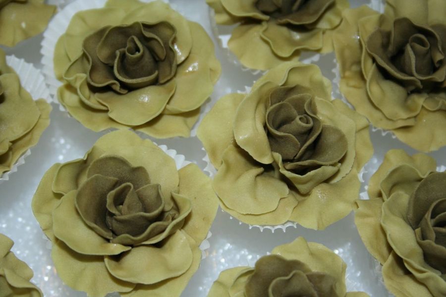 one of my previous students hired me to make 75+ gumpaste roses in this really tricky color (olive/sage green). I had a silk flower to go by....I feel I matched the color pretty accurately.
