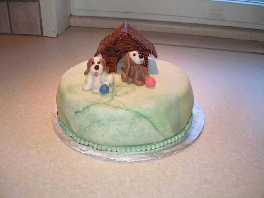 thanks for the nice comments! for the doghouse i just cut out pieces in gumpaste and glued them together with royal icing, painted it with cocoa powder dissolved in water