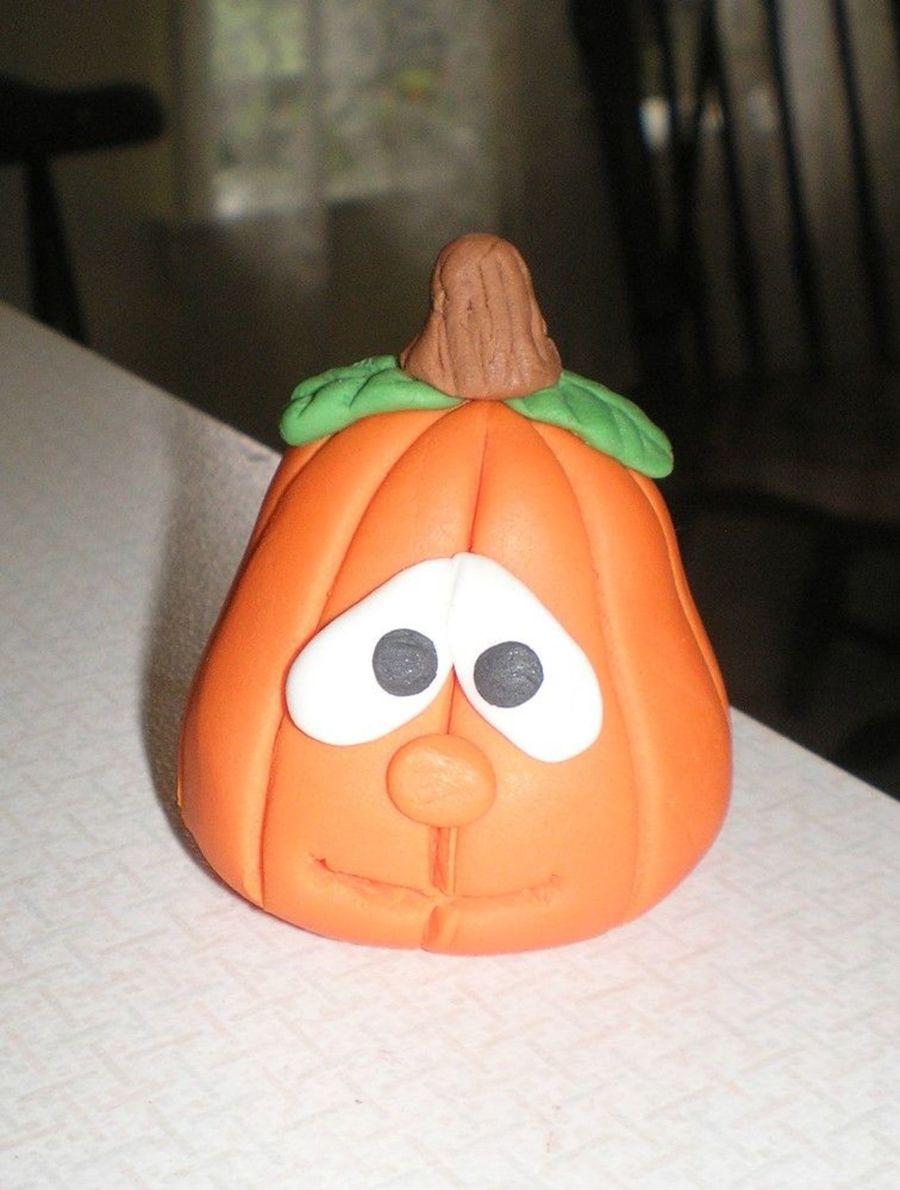 I made Friendly Pumpkin with fodant mixed with a little Tylose Powder. I am making a Haunted House cake in October and thought I would practice. I used a book called The Sculpey Way with Polymer Clay. You can get the book at Hobby Lobby or Michaels in the Clay Hobby area. It has some really great stuff in it.