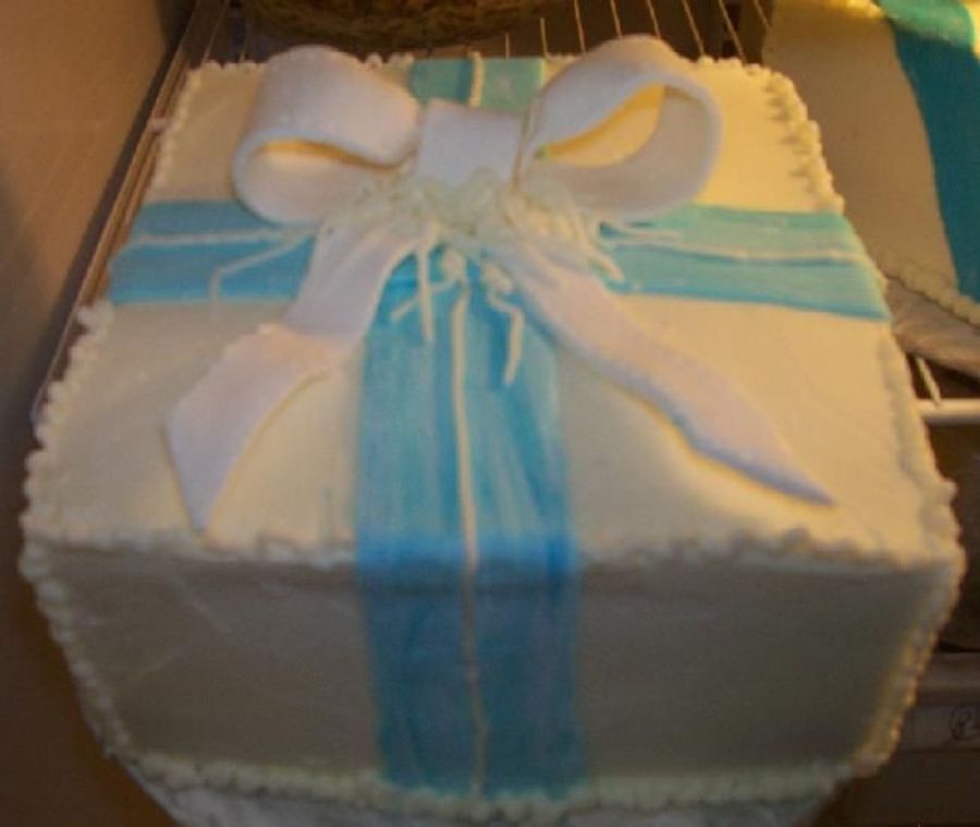 This is one of the cakes that went next to the larger birthday cake. Either white or chocolate with buttercream icing. Fondant accents.