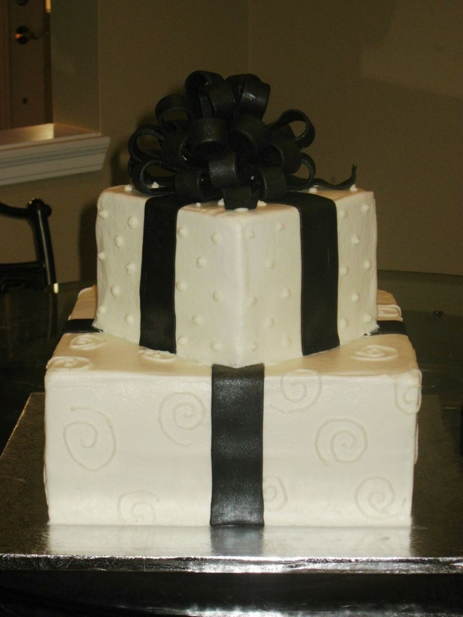 BC with fondant bow and ribbon. I painted the fondant with luster dust. This was based on a cake from this site.