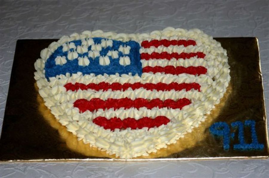 I made this chocolate chip heart-shaped cookie cake for the father of the little guy I baby-sit. He is a Fireman. I wanted the guys at the firehouse to know how much we appreciate what they do for us day in and day out, and especially wanted them to know that, all over America, we will never forget the huge numbers of their fellow firemen who sacrificed their lives to save others on that fateful Tuesday, 6 years ago, today.