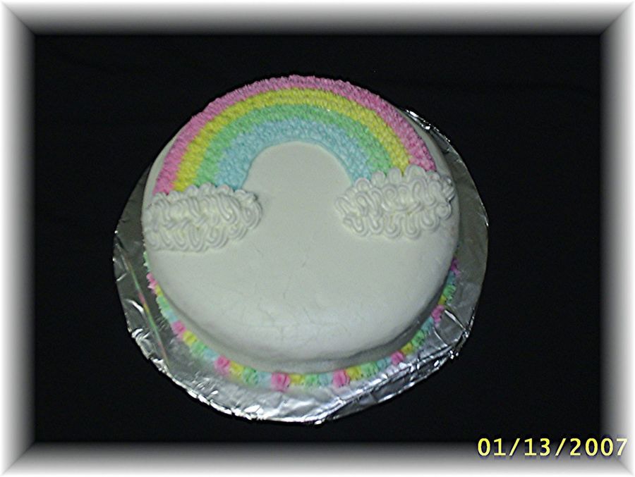 Great job! Your rainbow lines are neat and straight. Your stars are tight with no holes. Your clouds are cute. And your colors blend nicely. You did a great job on your first practice cake! I'll be looking for more great cakes in the future!