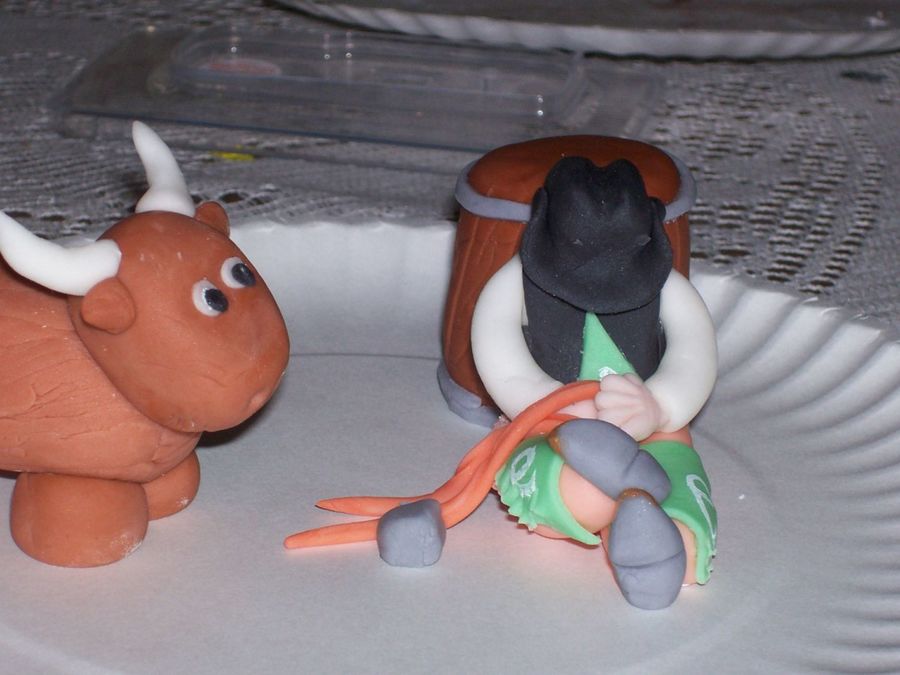 I did these figures for my dad and uncles birthday cake. They are both very big fans of the PBR (professional bull riding) not the beer! ha! Anyway they are just fondant. haven't made the whole cake yet but those pics will be coming when I get it done.